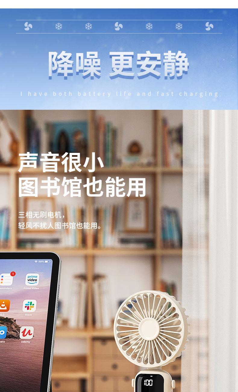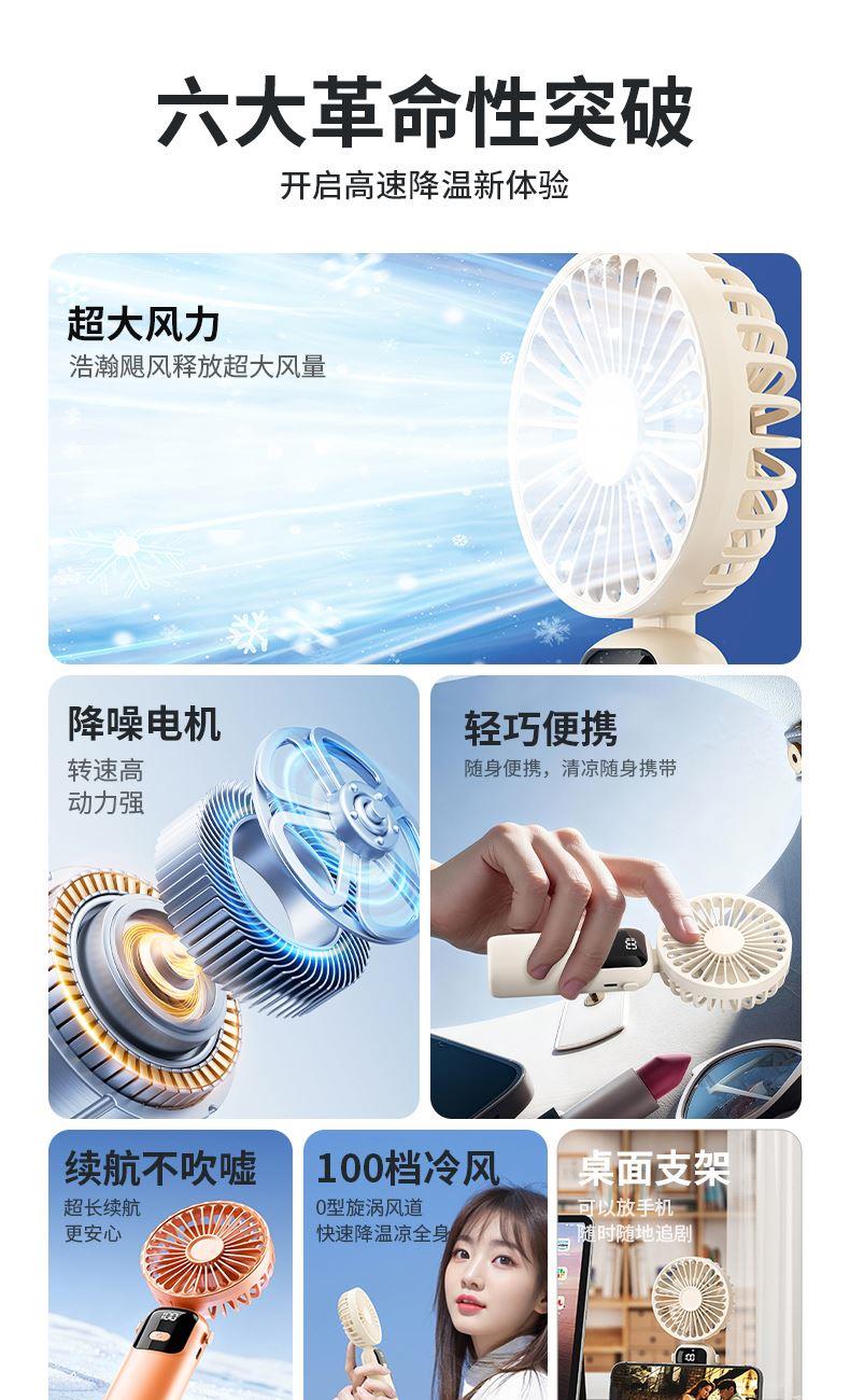 产品材质:ABS 产品功能:100档风力调节 产品容量:1200mAh 产品尺寸:202*90*37mm 产品颜色:白色,蓝色,橙色 智能数显设计,剩余电量一目了然;采用高性能锂电池,续航更持久,更静音,使用寿命更长。100档调节,风力随心选。定制LOGO面积大。