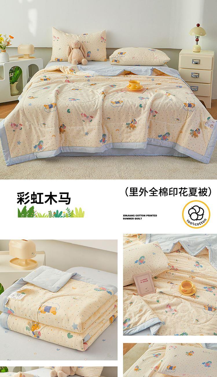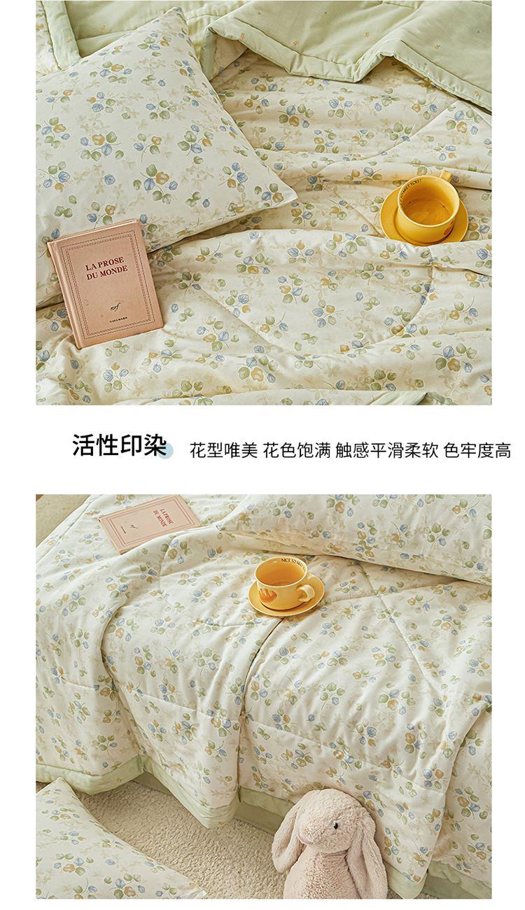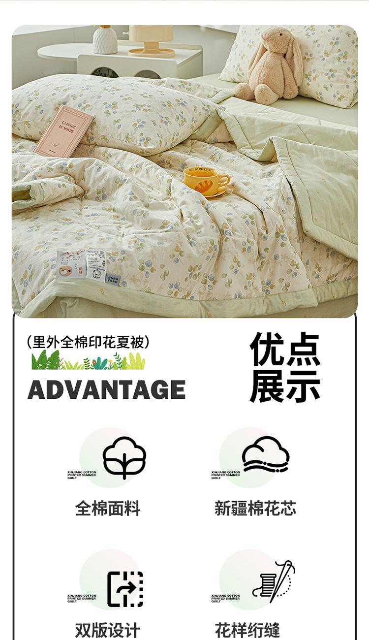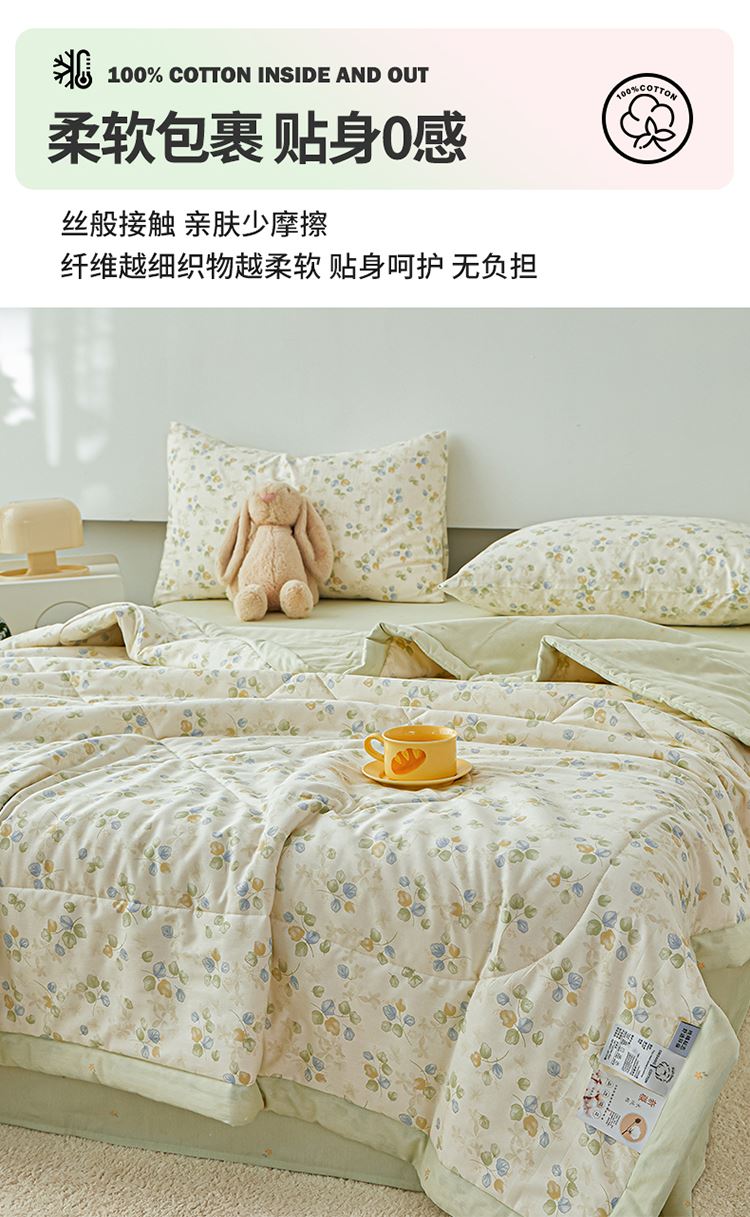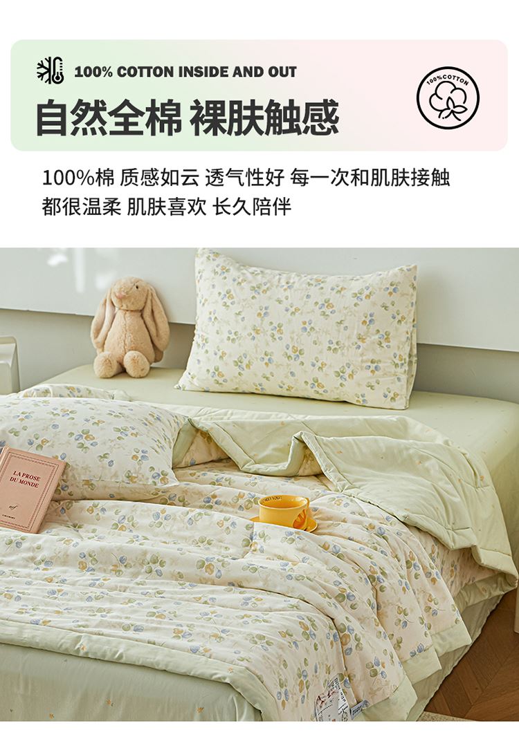 亲肤面料 | 采用亲肤的材质,柔软触感,手感舒适,不易气球,耐磨性好。 活性印染 | 新一代印染工艺,色牢度高,不易褪色,色彩靓丽。 面料: 全棉 填充: 棉花 尺寸:150*200cm