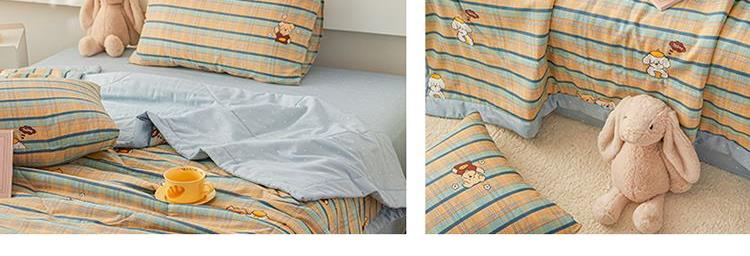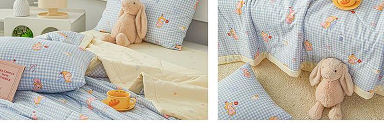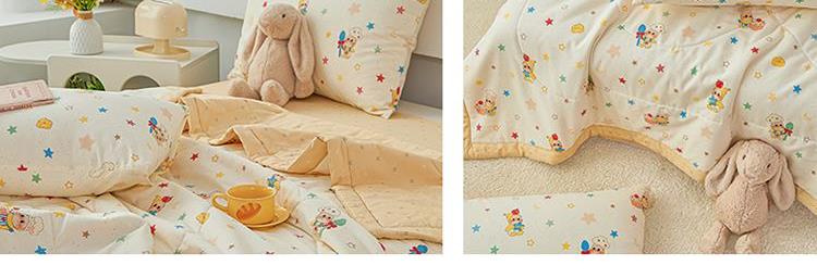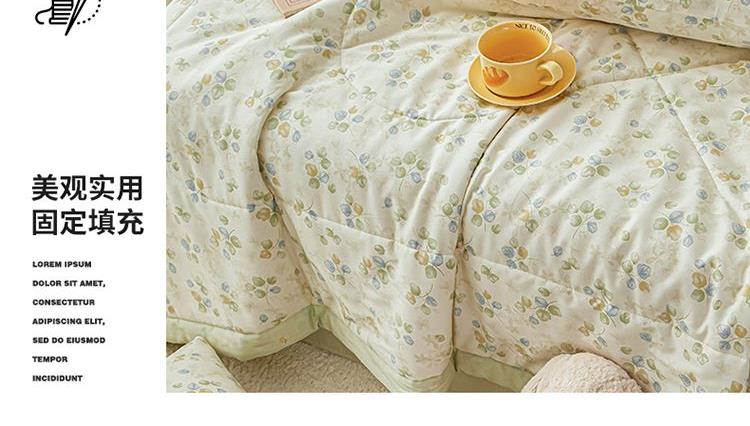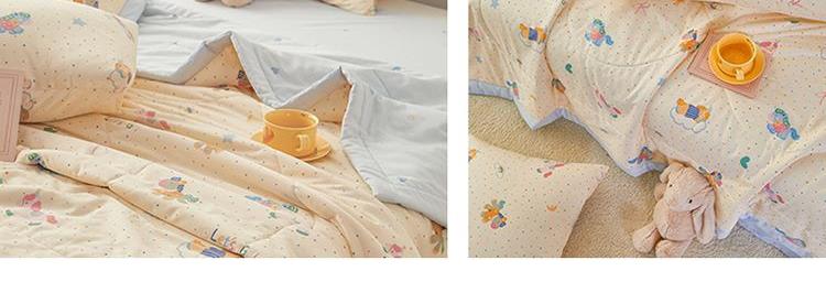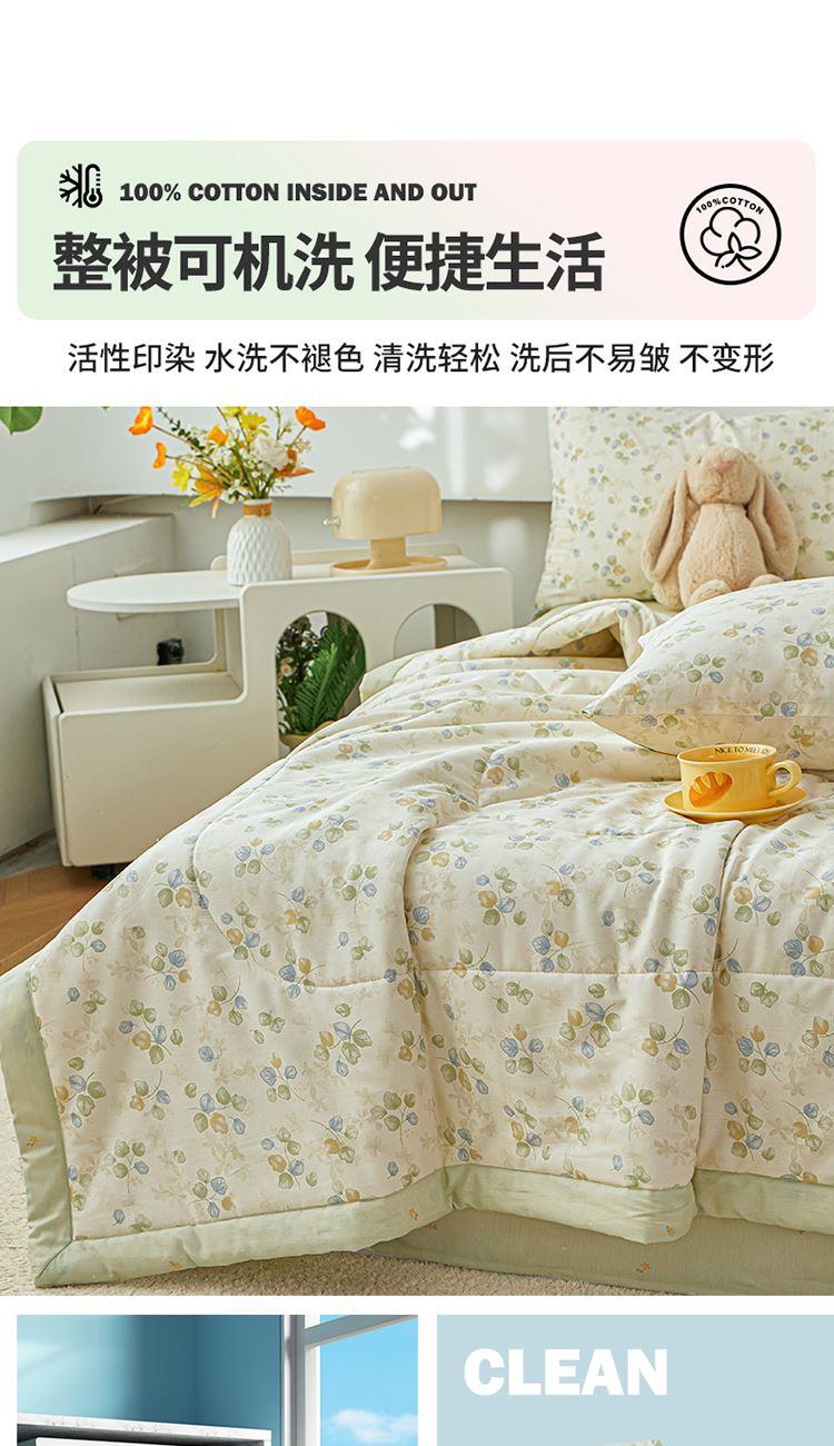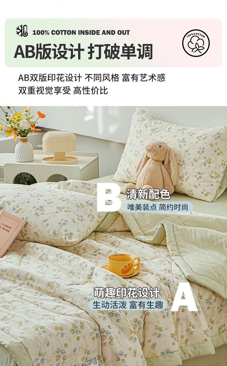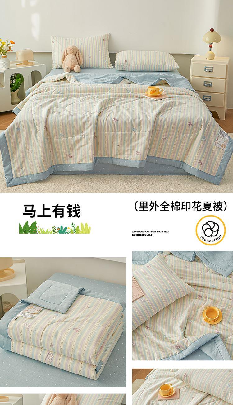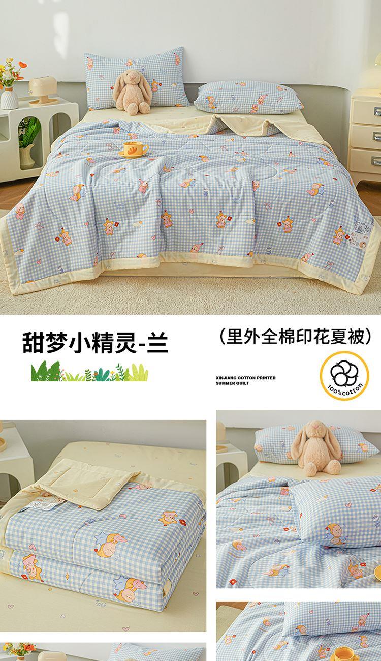 亲肤面料 | 采用亲肤的材质,柔软触感,手感舒适,不易气球,耐磨性好。 活性印染 | 新一代印染工艺,色牢度高,不易褪色,色彩靓丽。 面料: 全棉 填充: 棉花 尺寸:150*200cm