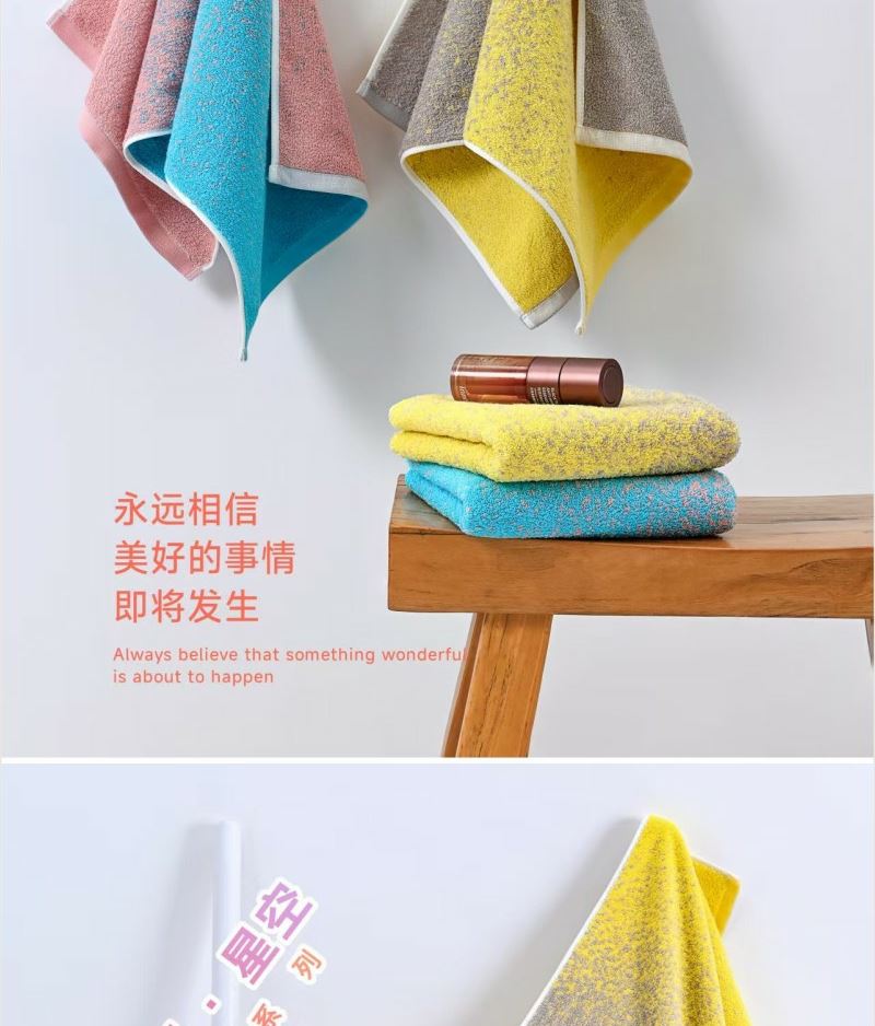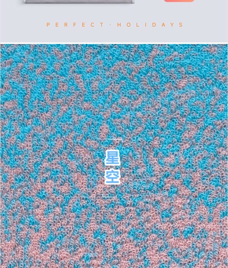 成份: 精梳棉 标准: FZ/T62033-2016 类别: GB18401-2010 B类 规格: 34CM*74CM *3 条 (105g每条) 礼盒: 29.5×21×7.4cm 天地盖+拎袋 时尚靓丽外观设计 采用优质精梳棉 先染色后提花织造而成 集外观美丽和优良品质为一体 两个颜色的设计取星空与原野为元素。
