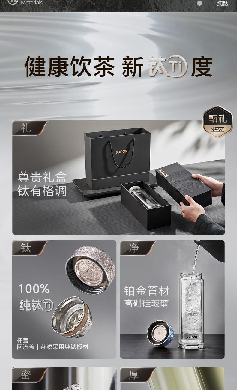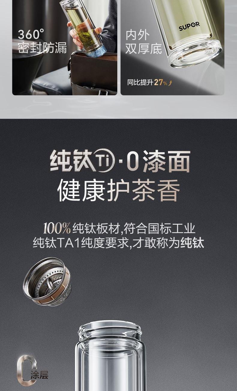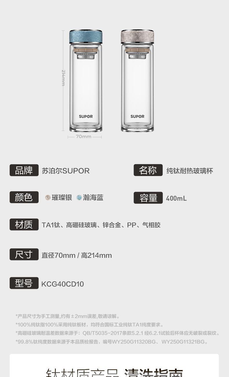苏泊尔纯钛耐热玻璃杯400ML