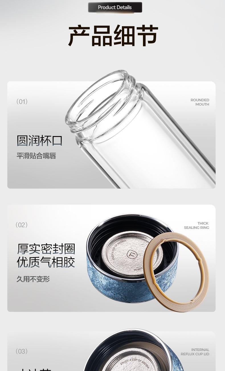 容量:400ml 578*463*268mm 15.50kgs 材质:316不锈钢+高硼硅 卖点: 1.加厚防爆杯体外层加厚底 2.耐冷热杯体4小时退火工艺