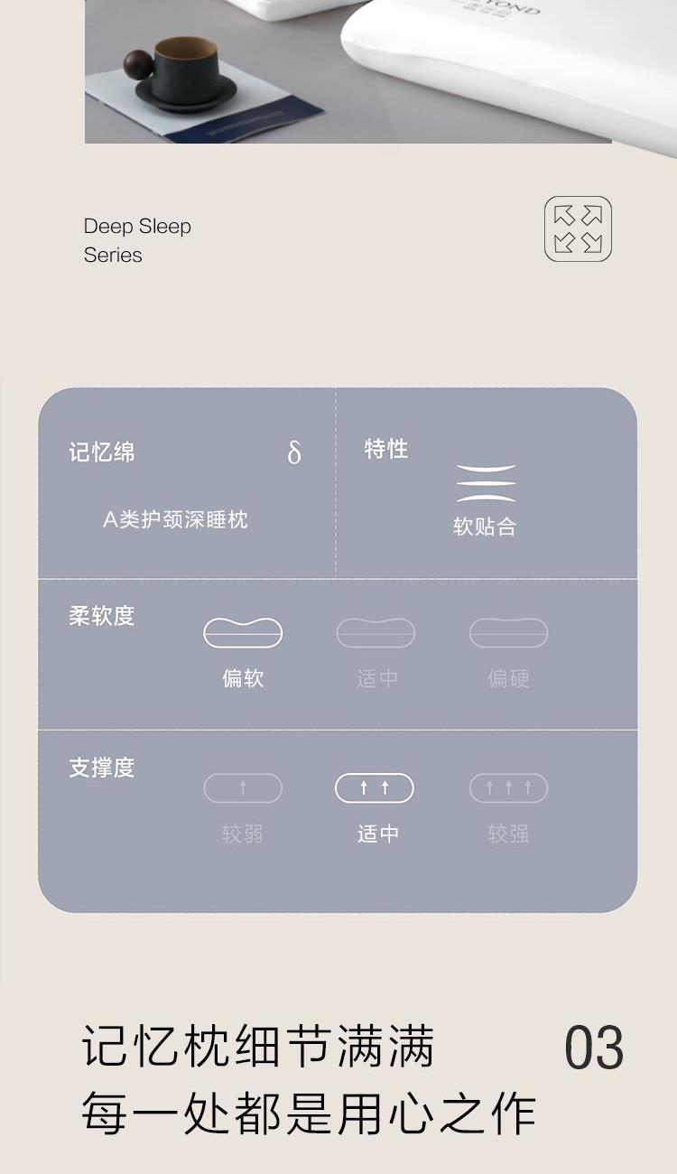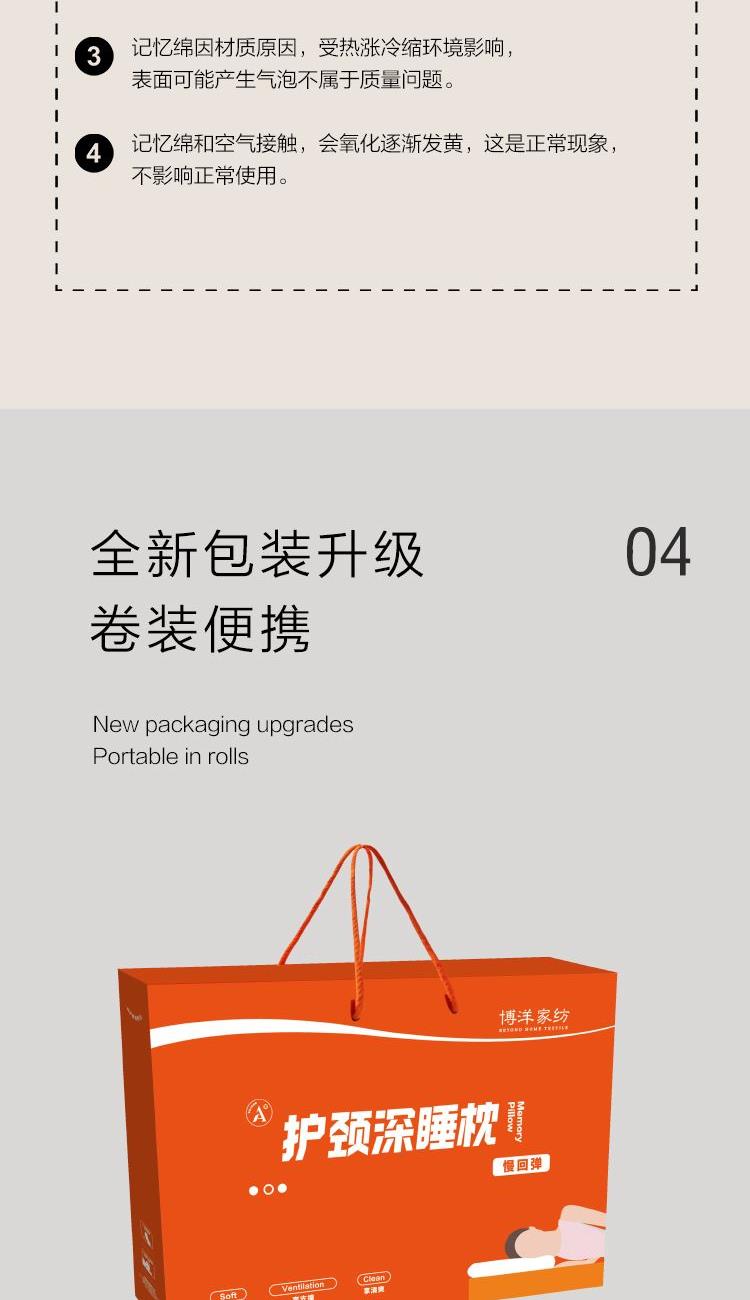 产品规格:70*42*8CM*1 面 料:枕套:93%聚酯纤维+7%氨纶 枕芯:%聚氨酯 1、超柔丝滑枕套,触感细腻柔滑,亲肤贴面,仿佛置身云端。 2、慢回弹记忆棉材质,躺下温和支撑起肩颈,平衡分散头颈压力,仰侧趴各种睡姿都能够舒适支撑。 3、超宽枕面,肆意翻滚。轻松翻身,动态支撑,包裹感十足。缓解一天工作疲劳,给您一夜深睡眠。
