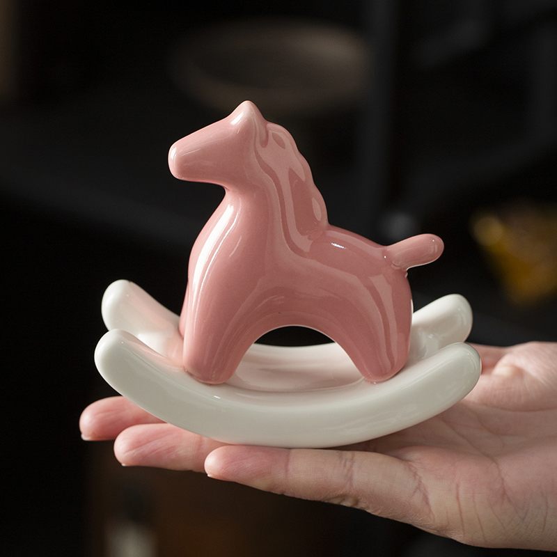 云博陶瓷渐变色马上幸福香插套装茶具摇摇马摆件瓷花香薰线香沉香