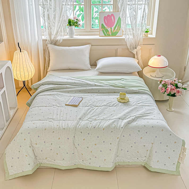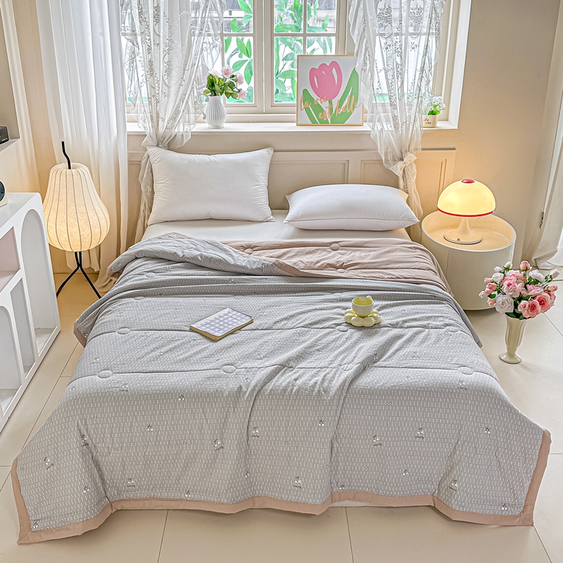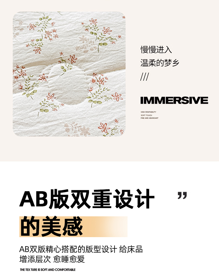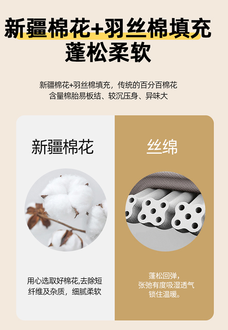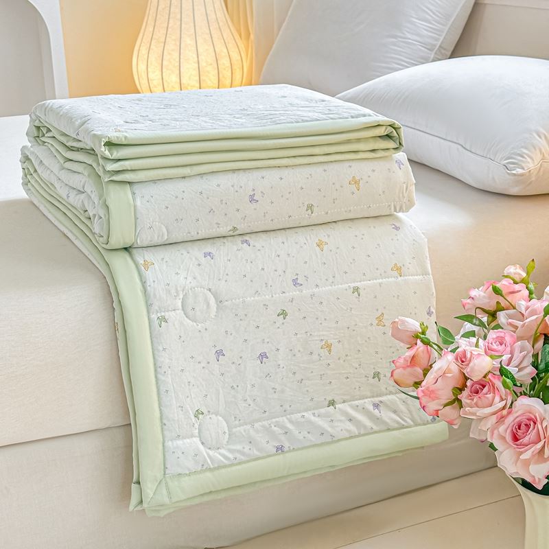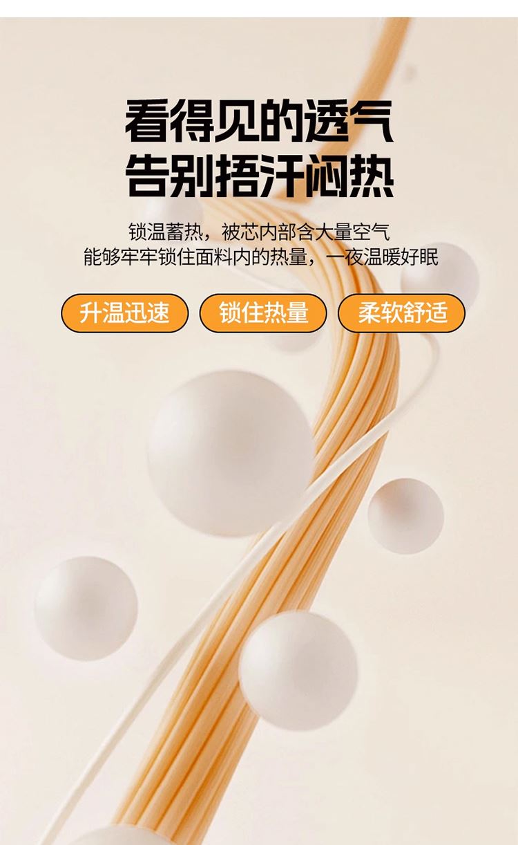 亲肤面料 | 采用亲肤的材质,柔软触感,手感舒适,不易气球,耐磨性好。 活性印染 | 新一代印染工艺,色牢度高,不易褪色,色彩靓丽。 面料:云柔棉 填充:51%新疆棉花+49%羽丝棉 尺寸:150*200cm