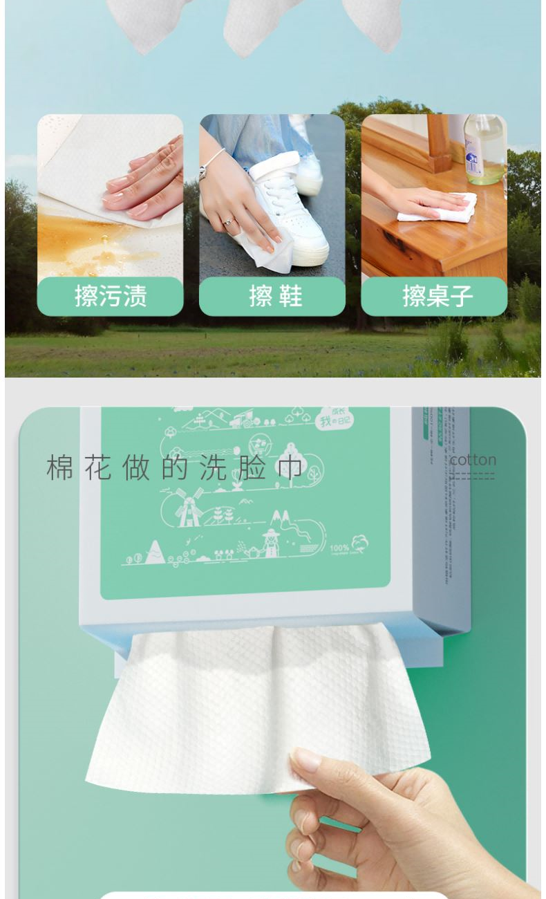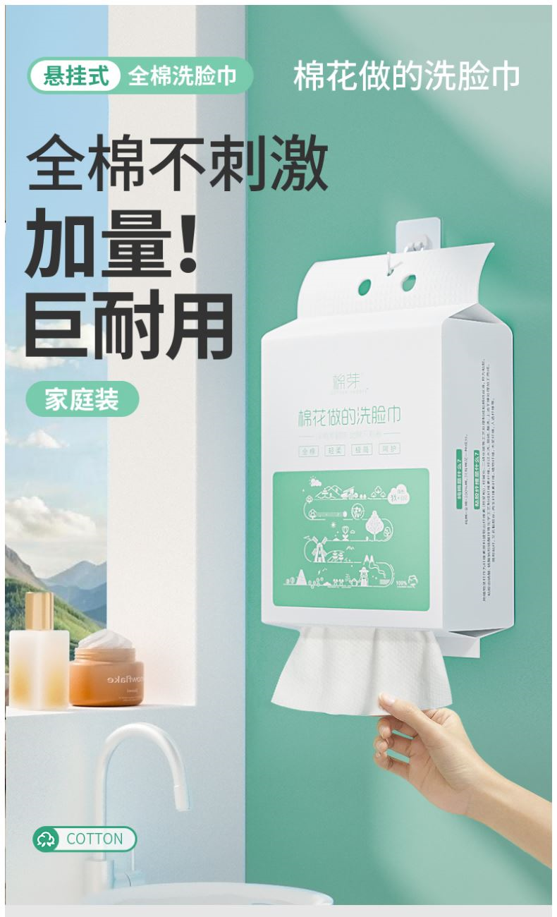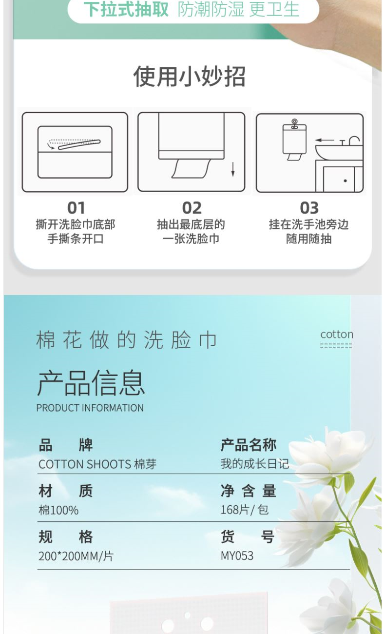 棉芽MY053一次性洗脸巾纯棉擦脸巾全棉柔巾悬挂式家庭装