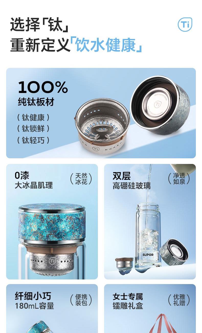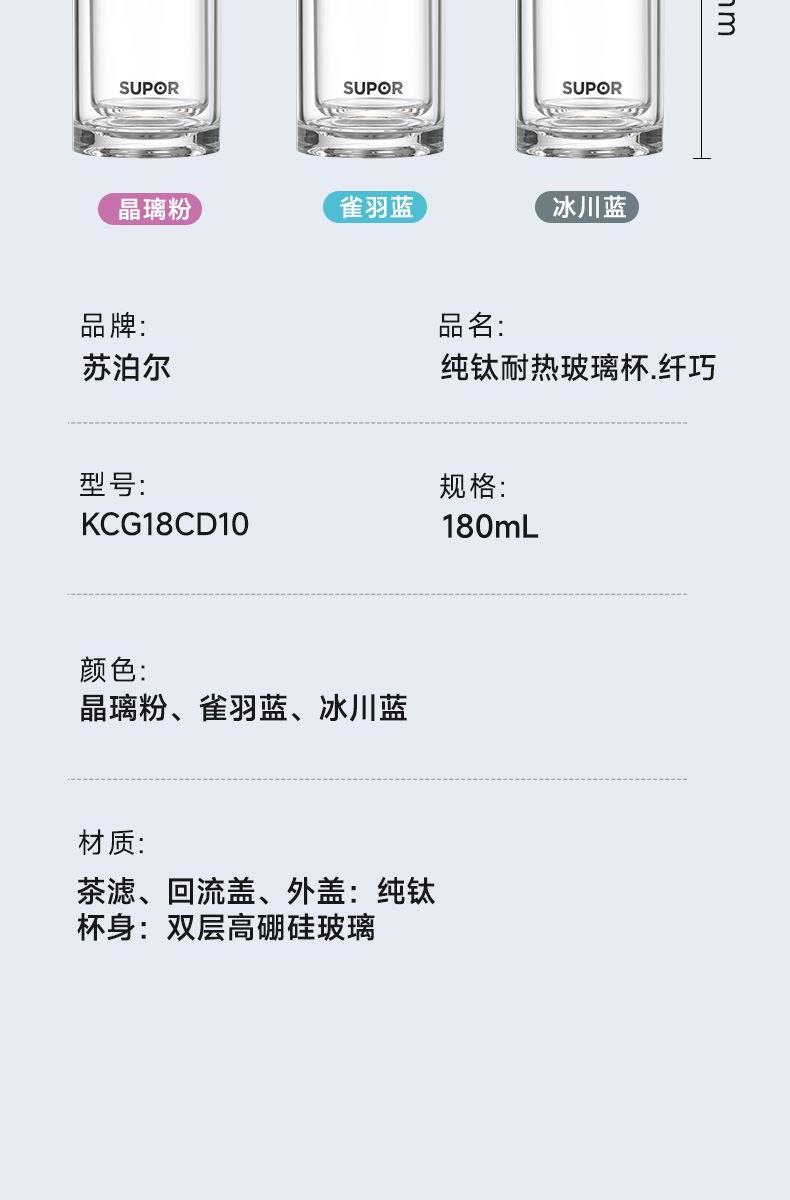 苏泊尔纯钛耐热玻璃杯纤巧180
