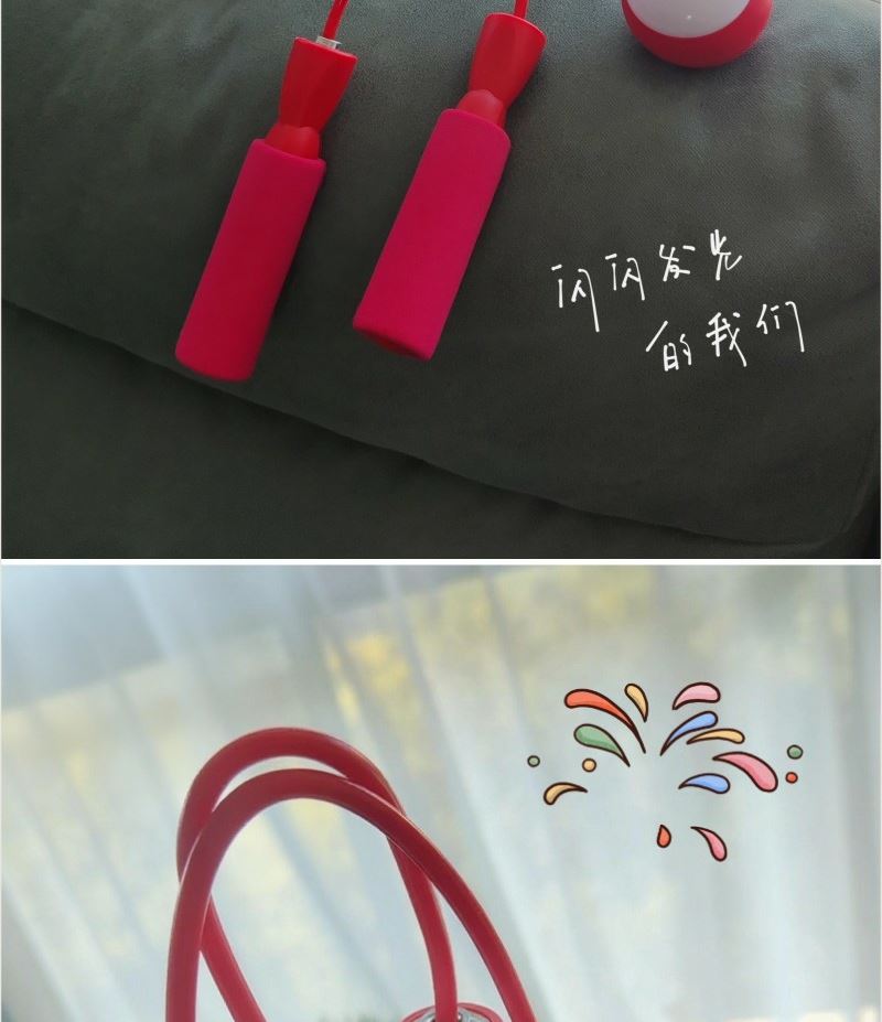 型号: TS-02 手柄材质:PP+EVA 球体材质:PP+TPR 球体直径:61MM 产品重量:180克 礼盒尺寸:20*10*6CM 大球体设计 模拟真实跳绳感受