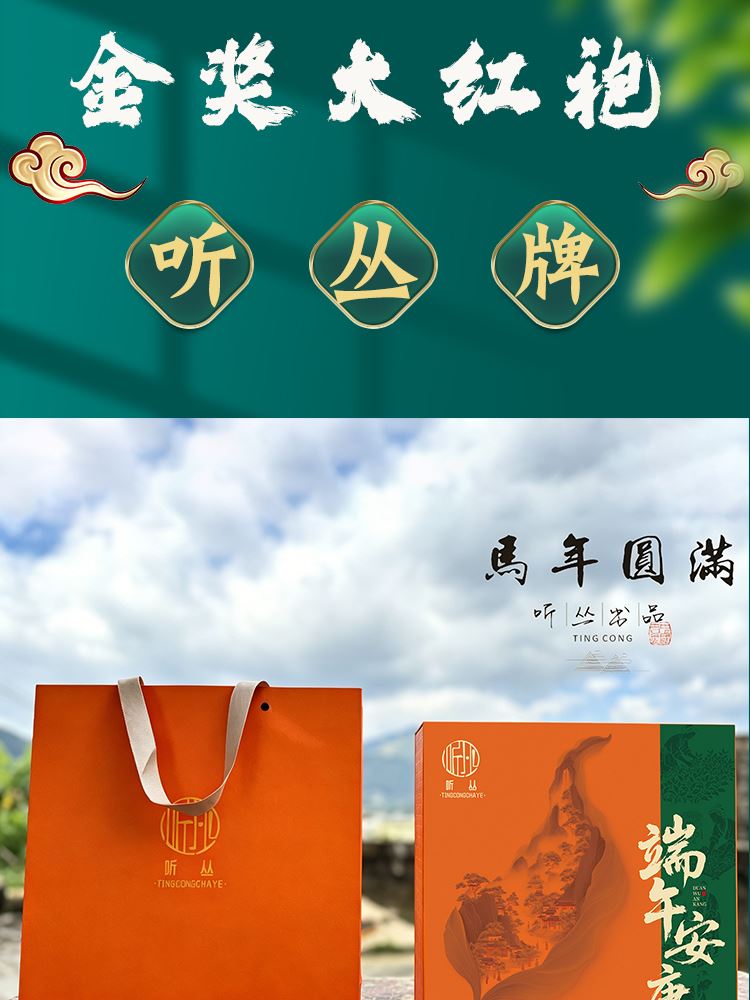 大红袍产于福建武夷山,属于乌龙茶,其外形条索紧结,色泽绿褐鲜润,冲泡后汤色橙黄明亮,叶片红绿相间。大红袍的香气馥郁,具有兰花香,且“岩韵”明显,此外,大红袍的耐泡性极强,冲泡七、八次仍有香味。 大红袍的口感醇厚且甘甜,带有轻微的涩感,但回甘迅速,口腔留香持久,香气高扬,花香与果香交织,汤色橙黄明亮! 【重量】:250g(31小泡) 【配件】:小泡茶+礼盒+手提袋 【口味】:清香型 【产地】:福建·武夷山
