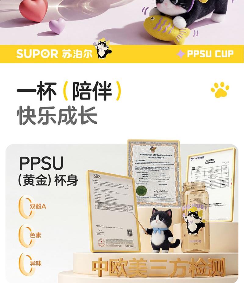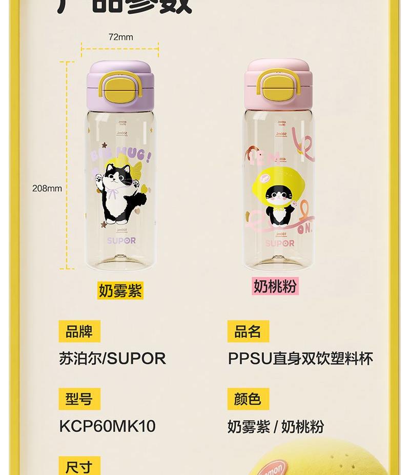 苏泊尔PPSU直身双饮塑料杯