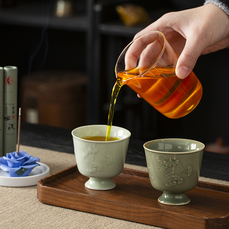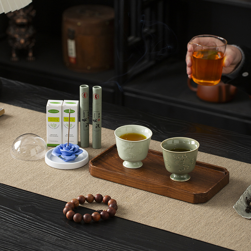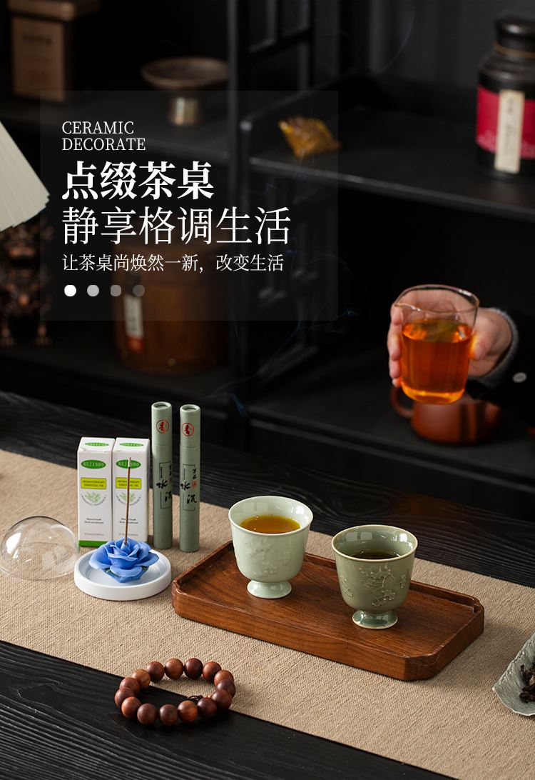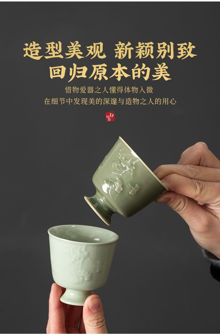 配置:主人杯*2 陶瓷花*1 香薰*2 线香*2 礼盒*1 手提袋*1 材质:青瓷 礼盒尺寸:29cm*21cm*12cm 产品尺寸:银杏杯:直径6.7cm,高6.2cm,容量90ml,