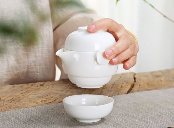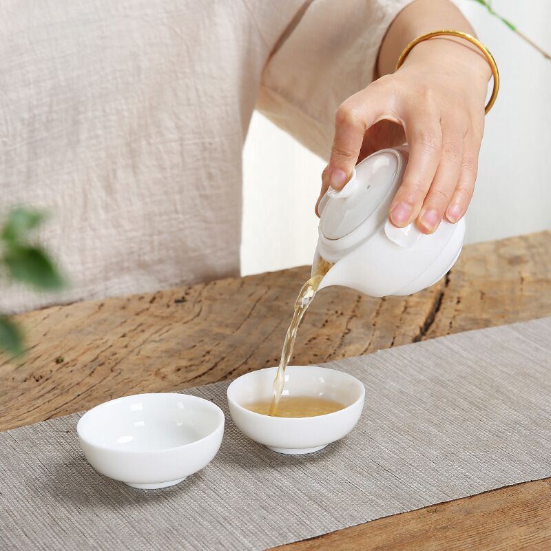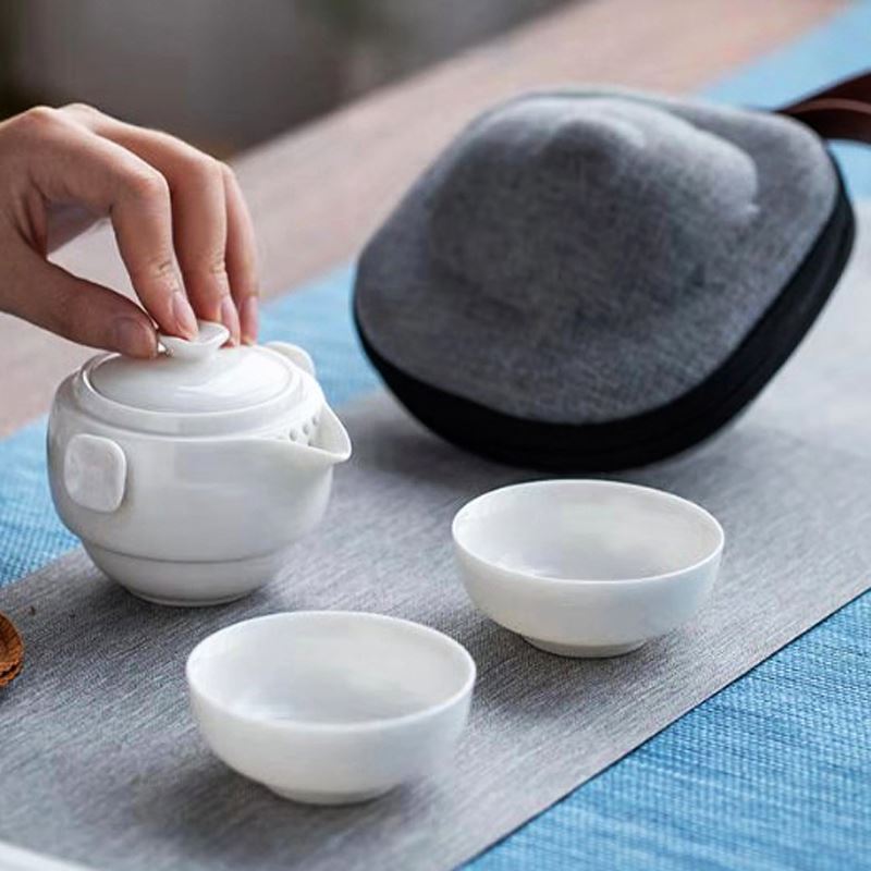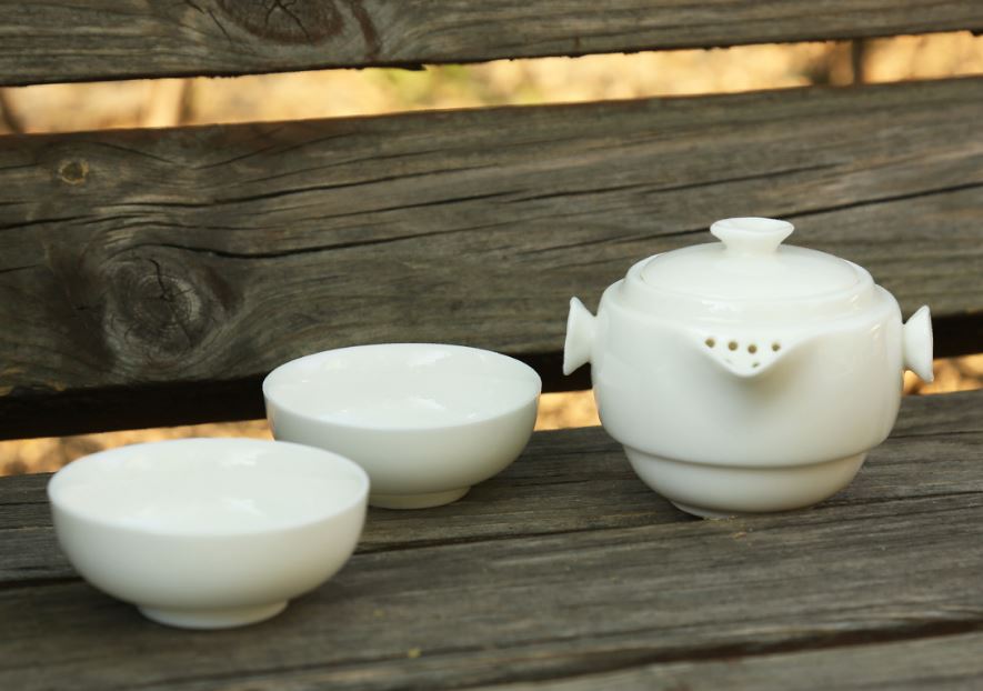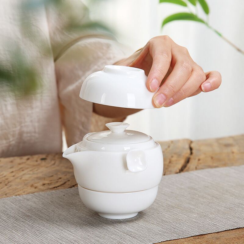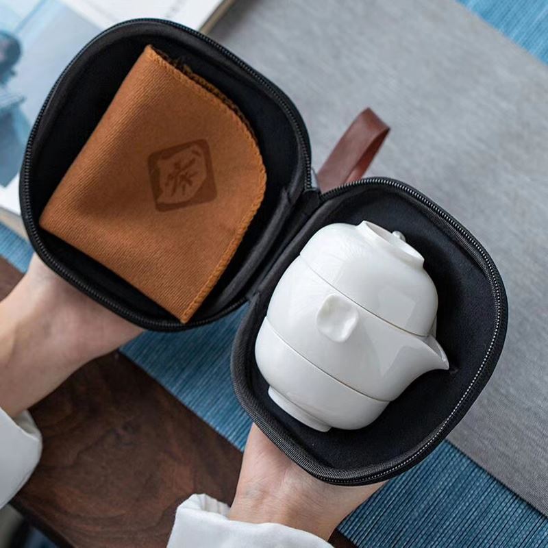 鹏翼特级羊脂玉瓷快客套装户外踏青