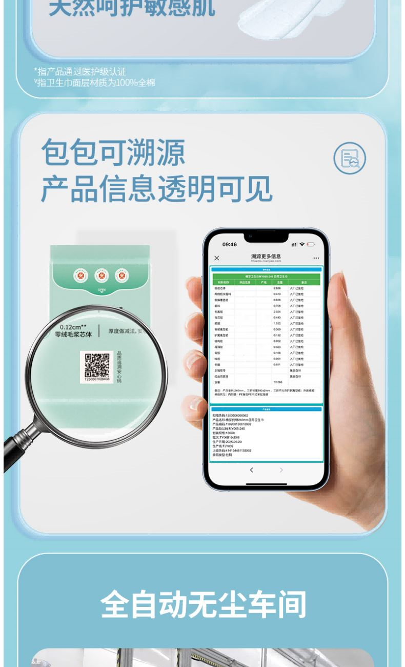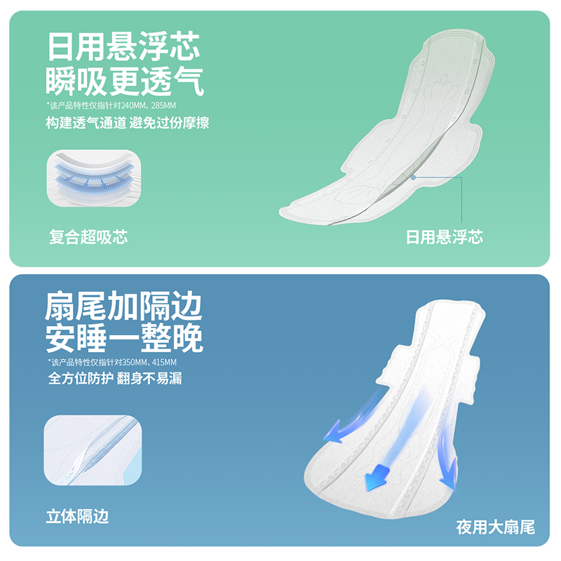 净含量:4片/包*1包 材质:全棉无纺布、高分子吸水树脂、透气底膜、热熔胶 核心利益点: 不闷 超薄芯体 不漏 瞬吸锁水 不刺激 纯棉