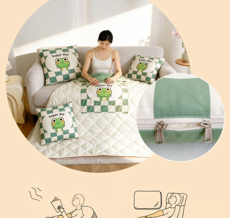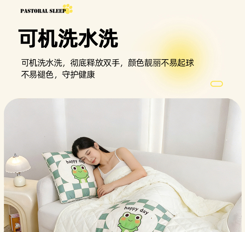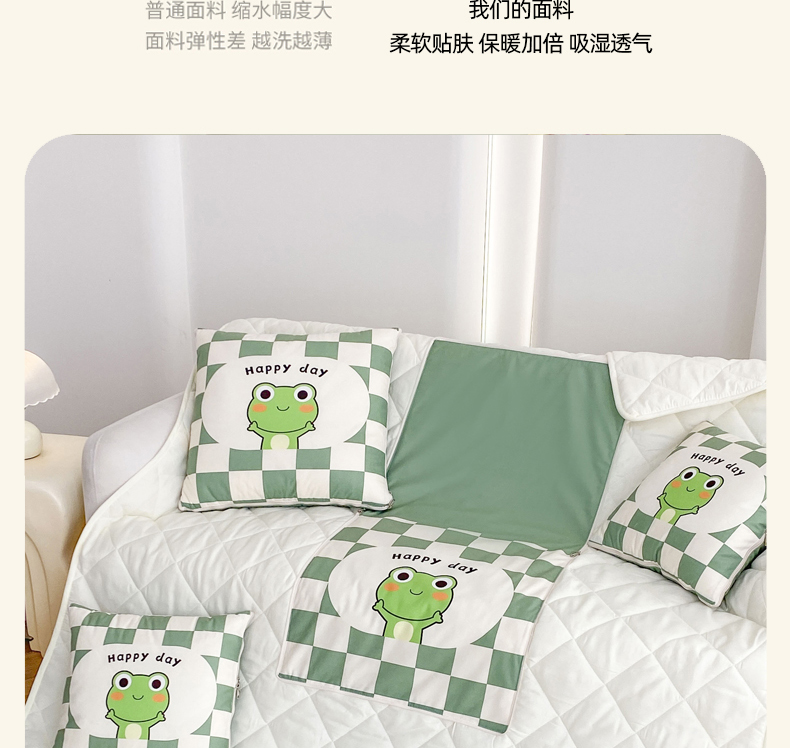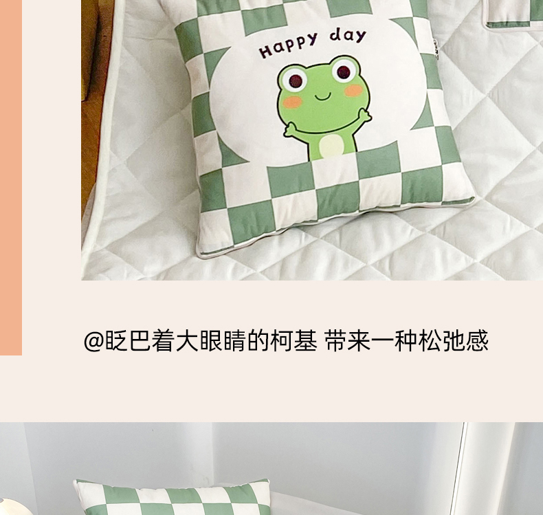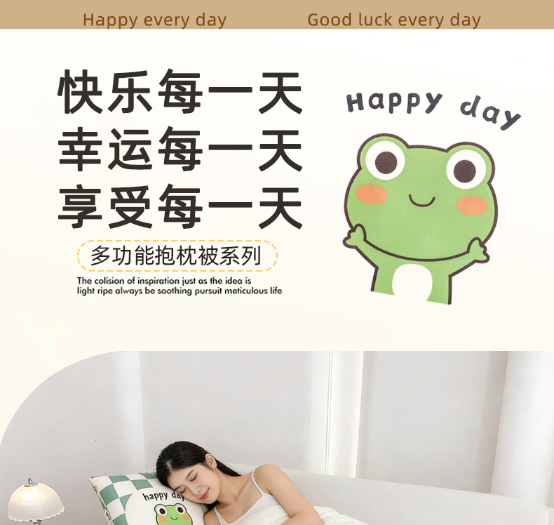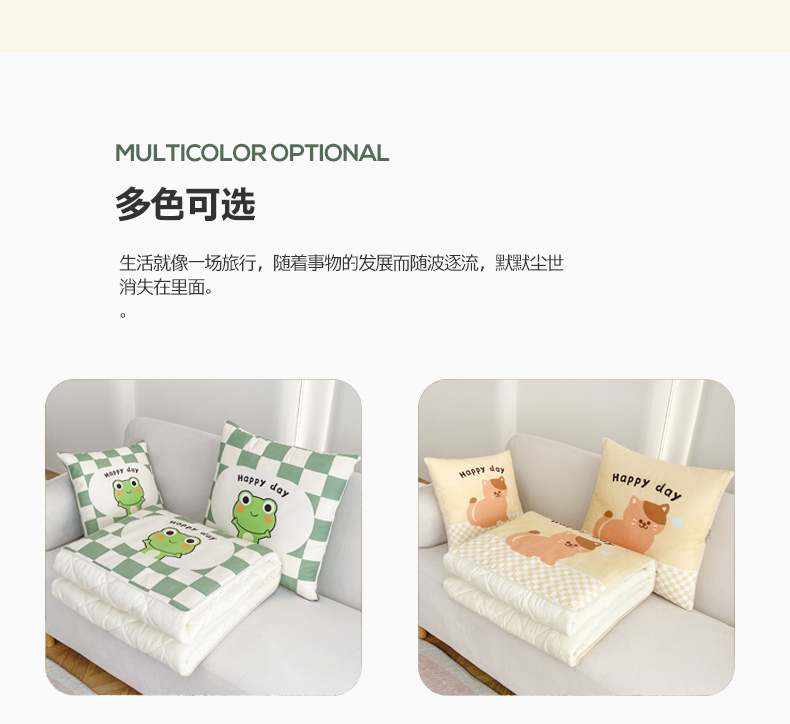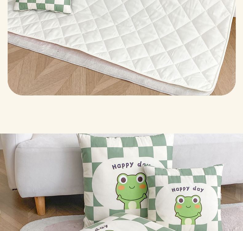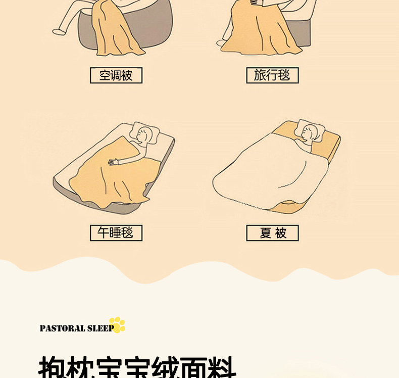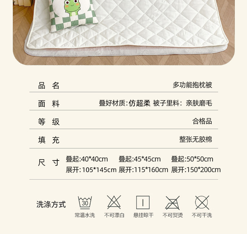 1:一被多用多功能Breath.体验会上瘾的睡眠 2:拘枕宝宝绒面料,被子亲肤磨毛面料柔软亲肤,触感软糯,令每一寸肌肤都能感受到轻柔抚摸 尺寸:40*40cm展开105*145cm 包装:彩盒